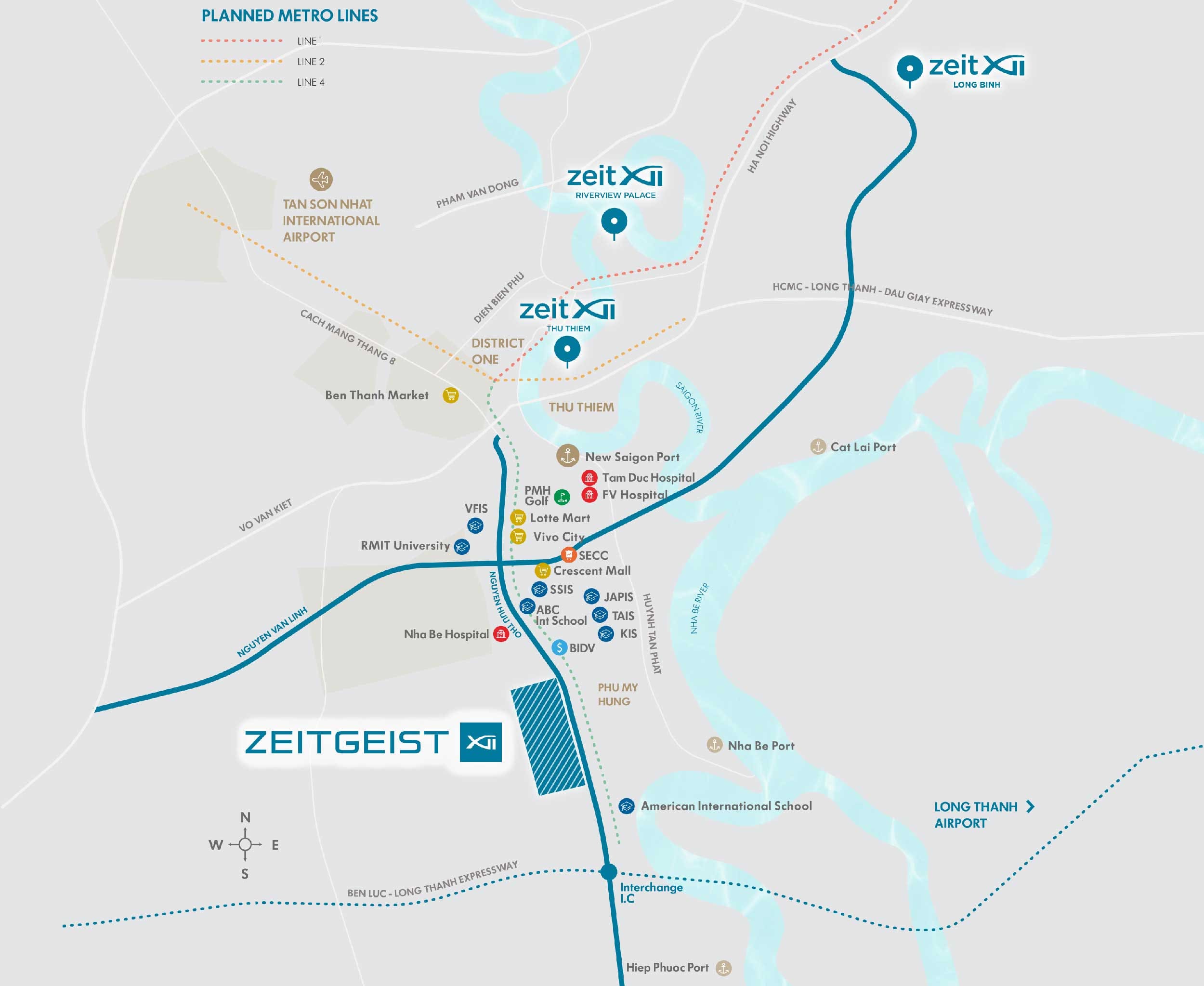 Tuyến Metro số 4 với điểm đầu là Q12 đến chợ Bến Thành và nhà ga cuối tại khu đô thị Hiệp Phước. Tuyến đường sắt ảnh hưởng mạnh đến giá trị bất động sản khu vực này nói chung và dự án ZeitGeist nói riêng. Dự án kết nối tạo sự thông suốt giao thông từ trung tâm thành phố về khu Nam.