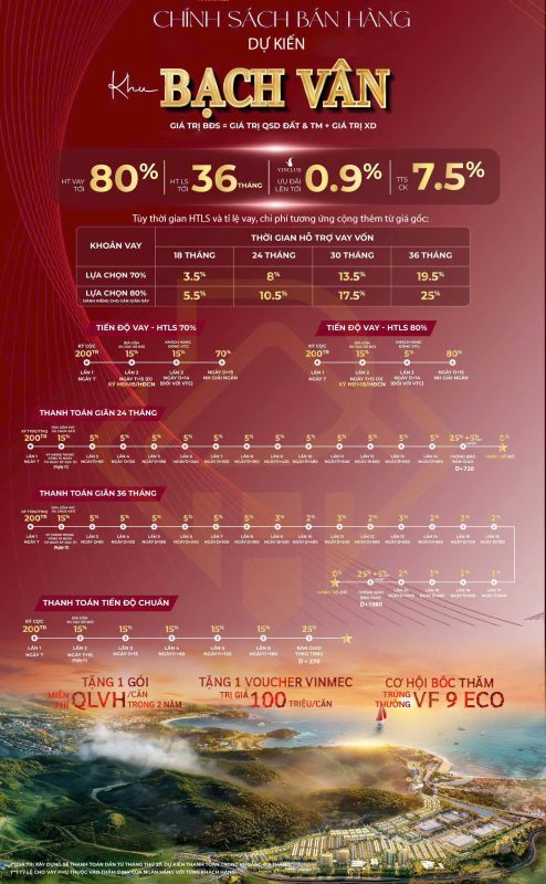 Sở hữu lâu dài tại phân khu Châu Âu – Bạch Vân: Đây là điểm khác biệt rất lớn so với thị trường. Phần lớn bất động sản nghỉ dưỡng ven biển tại Việt Nam chỉ có thể sở hữu 50 năm. Phân khu Bạch Vân của Vinhomes Làng Vân cho phép sở hữu lâu dài – một lợi thế quan trọng cả về giá trị sử dụng lẫn thanh khoản khi cần chuyển nhượng.